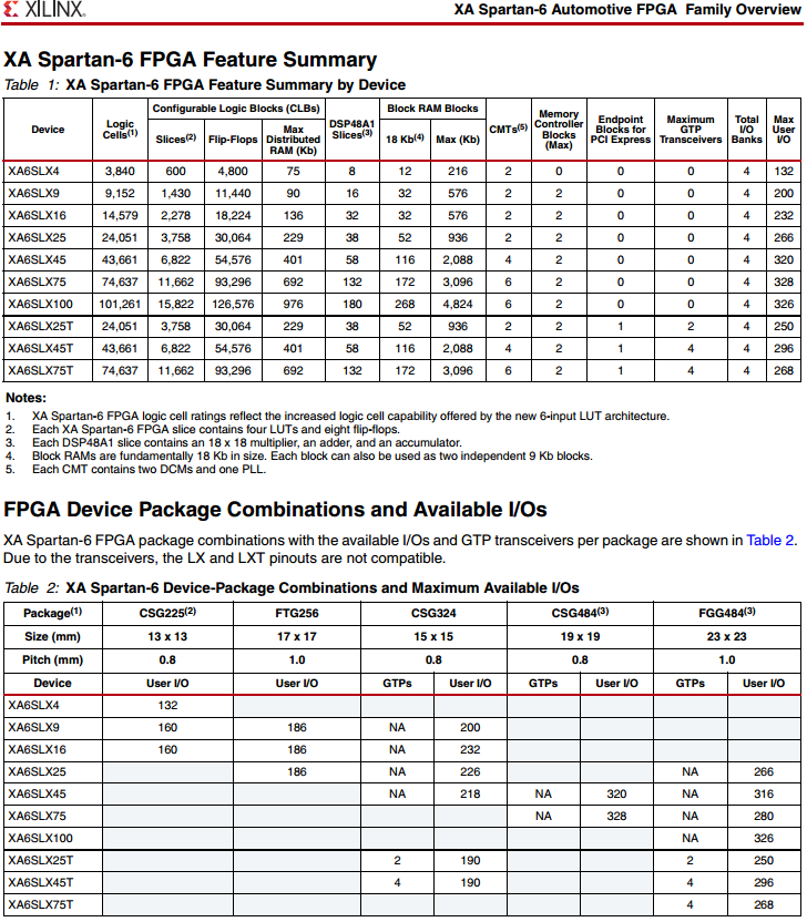汽車級 XA Spartan-6 FPGA 系列